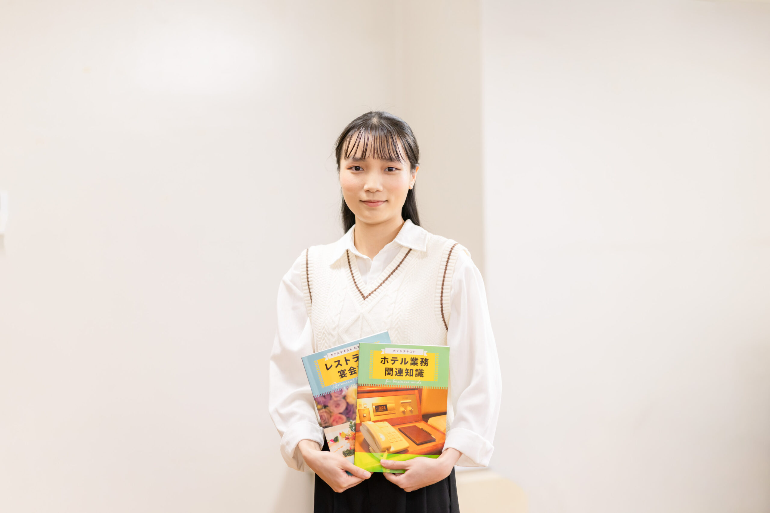 在学中は、将来について悩んだり、心配したりしましたが、先生からたくさんサポートがあり、自分のやりたいことを見つけることができました。今は、お客様が帰る際の笑顔が私の一番のやりがいです。これからもお客様の笑顔のために頑張りたいと思います。